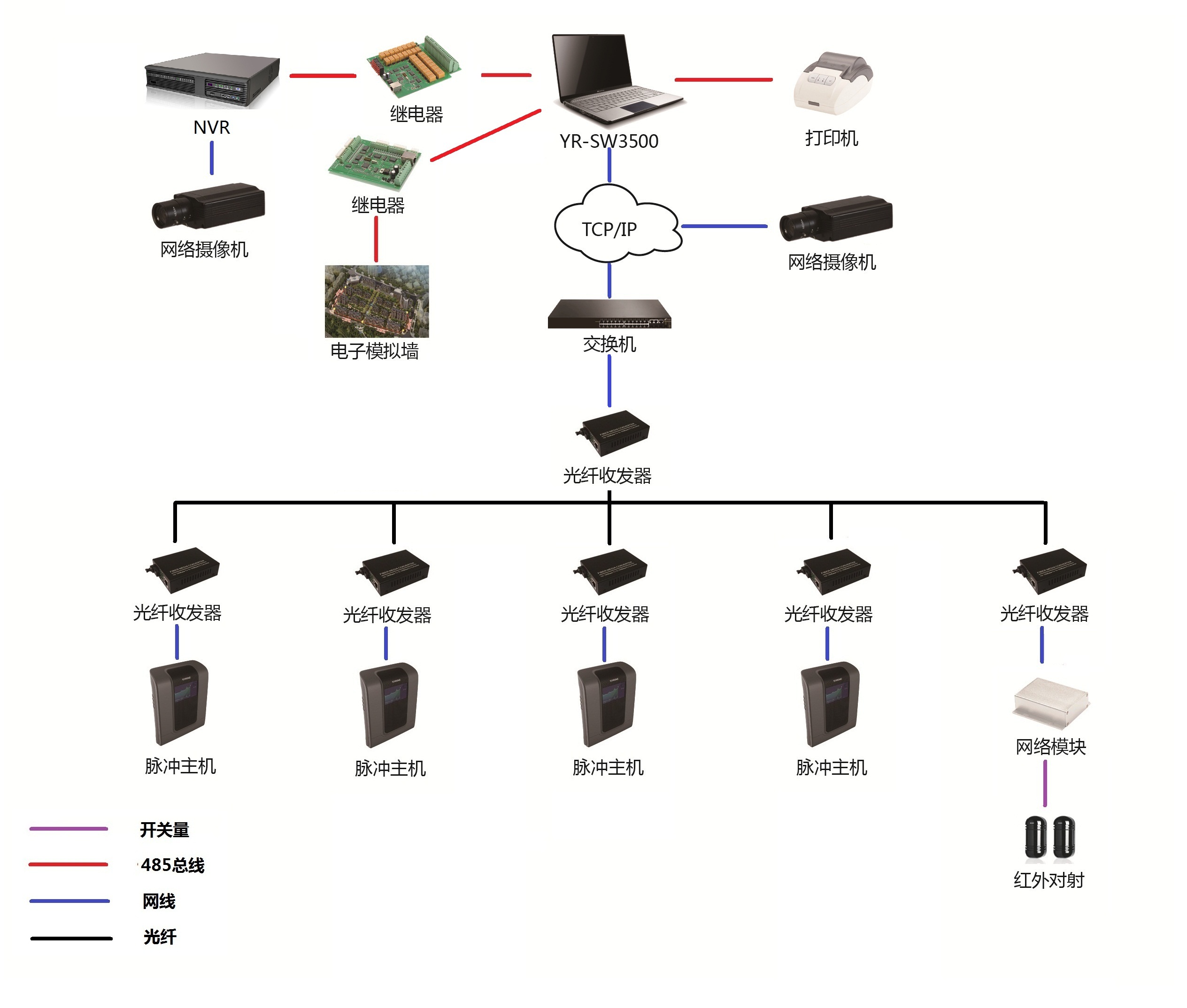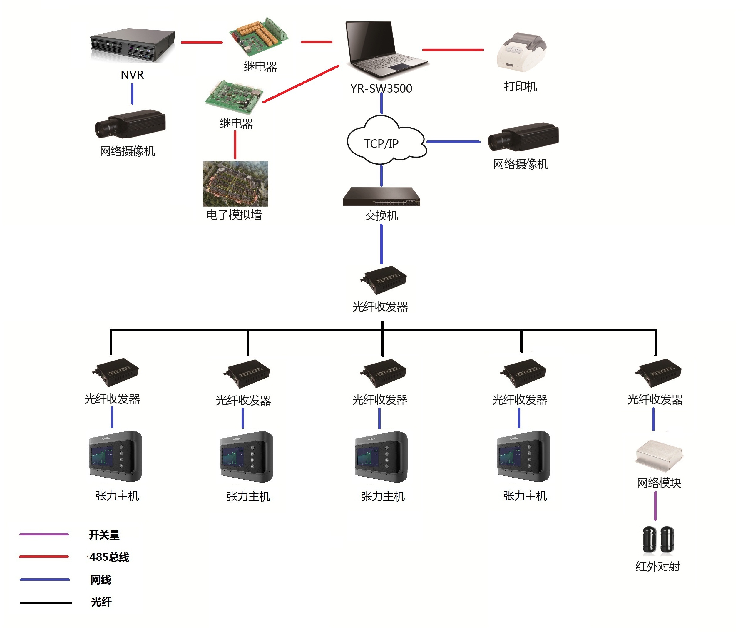 普通型張力圍欄主機(jī)+中心控制鍵盤/網(wǎng)絡(luò)單機(jī)控制軟件+網(wǎng)絡(luò)平臺(tái)控制軟件SW4000